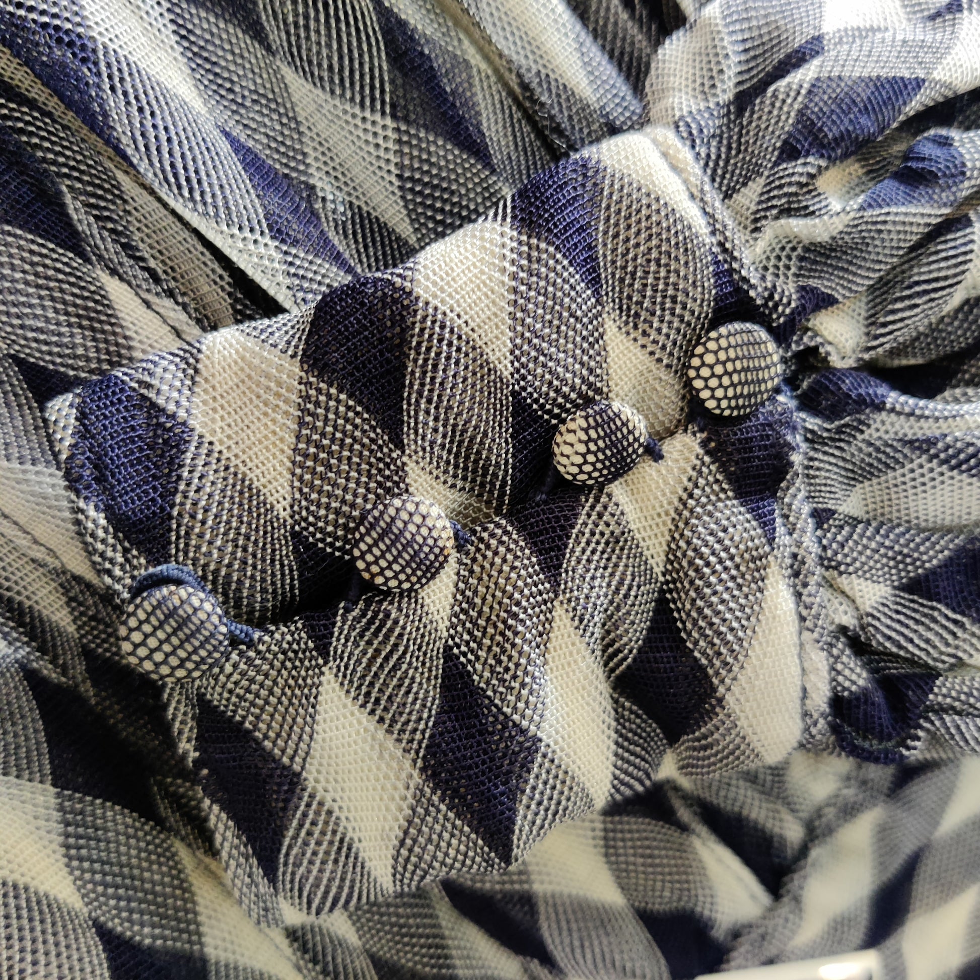 A stunning handmade harlequin check coat/jacket in contrasting navy blue and off white. The piece dates to the 1930s