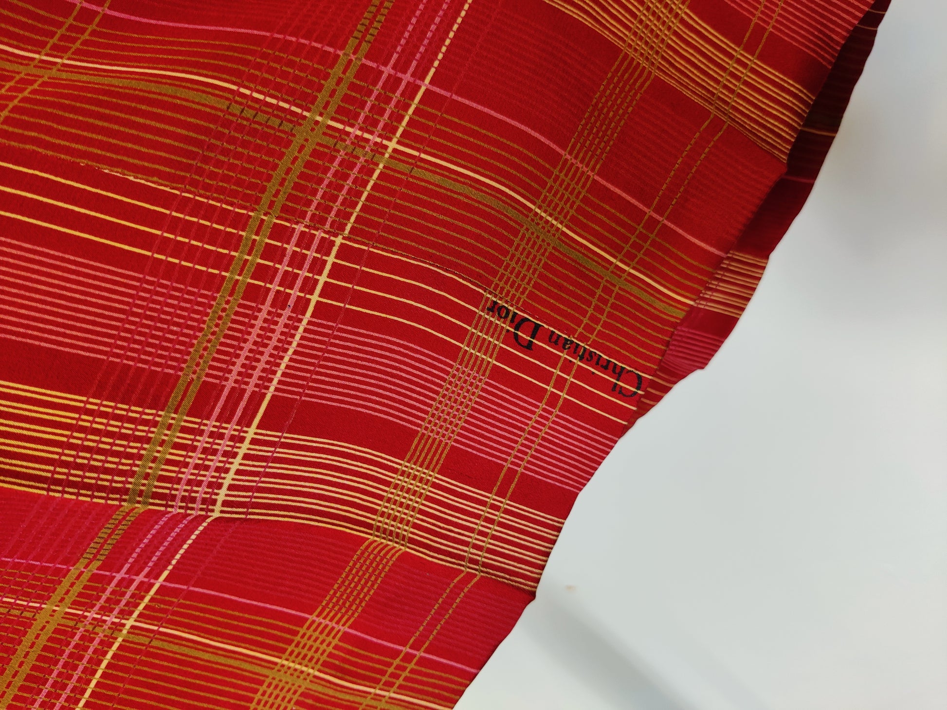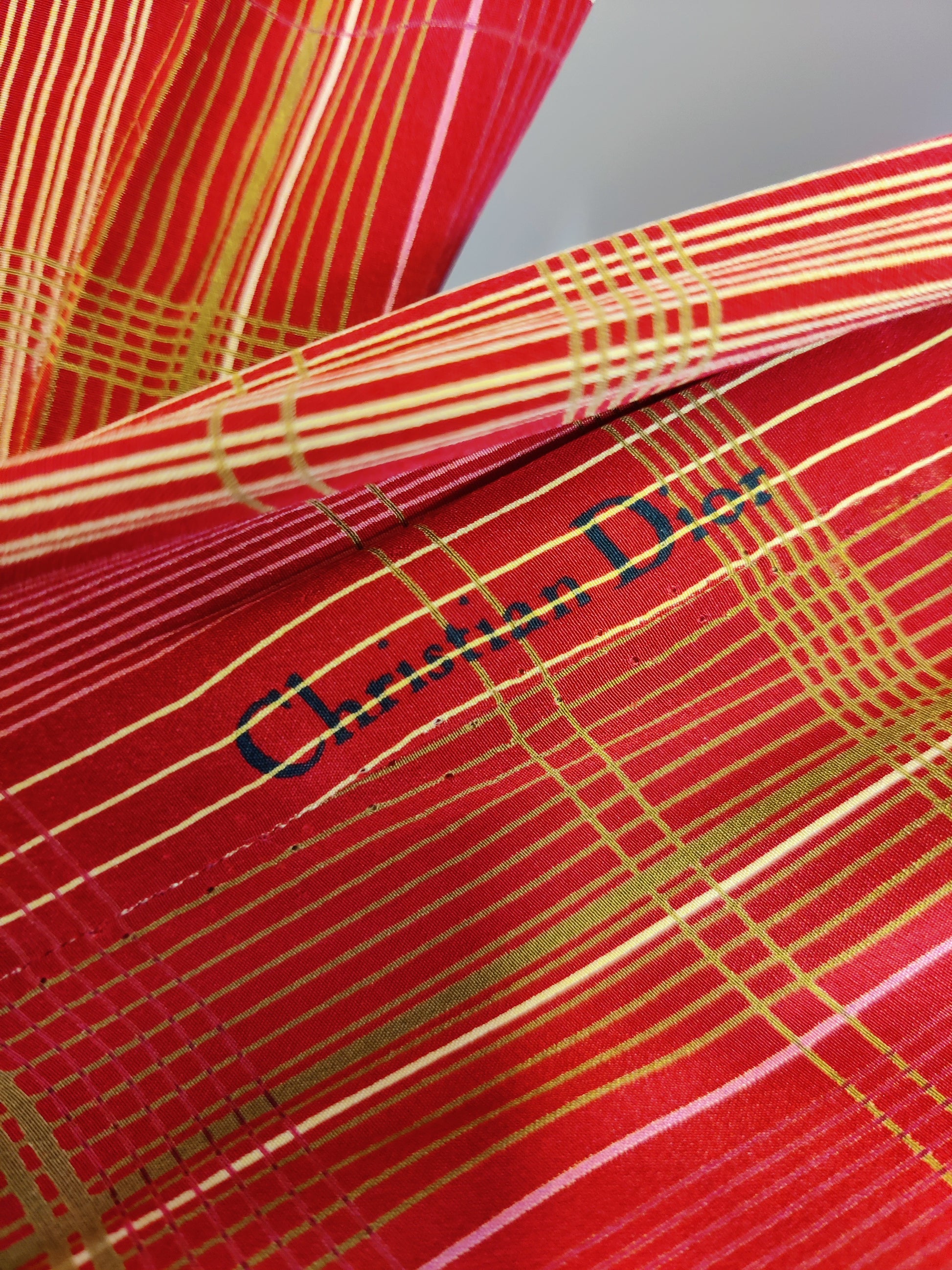 The fabric is high quality and shows the Christian Dior signature in two places on the dress. This is where the signature on the selvedges of the fabric has been skillfully allowed to show on the right side of the dress skirt where it has been seamed (see images).