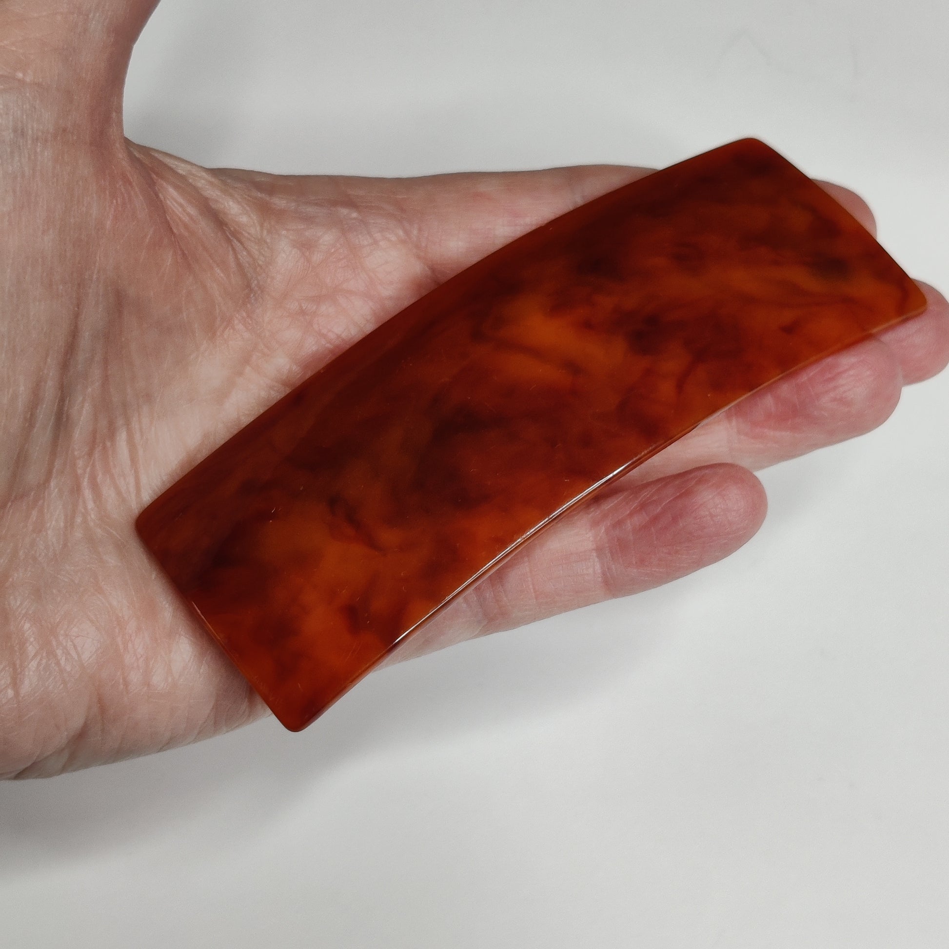 This is a beautiful and simple hair slide/barrette in a toffee colour with a faux tortoiseshell pattern.