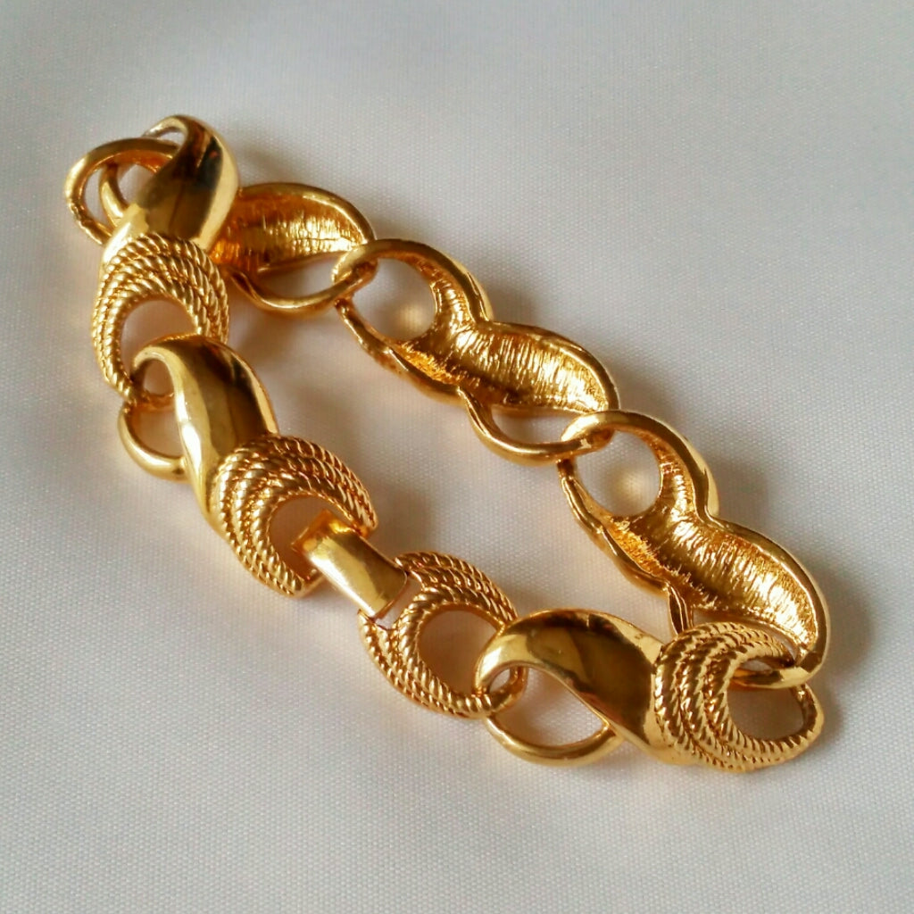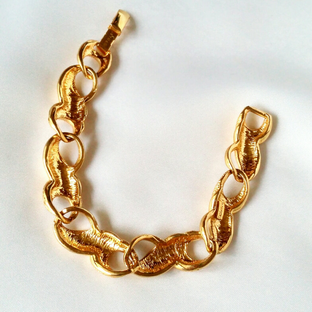 This is a simple articulated link bracelet by Trifari and dates to the 1980s/90s.
