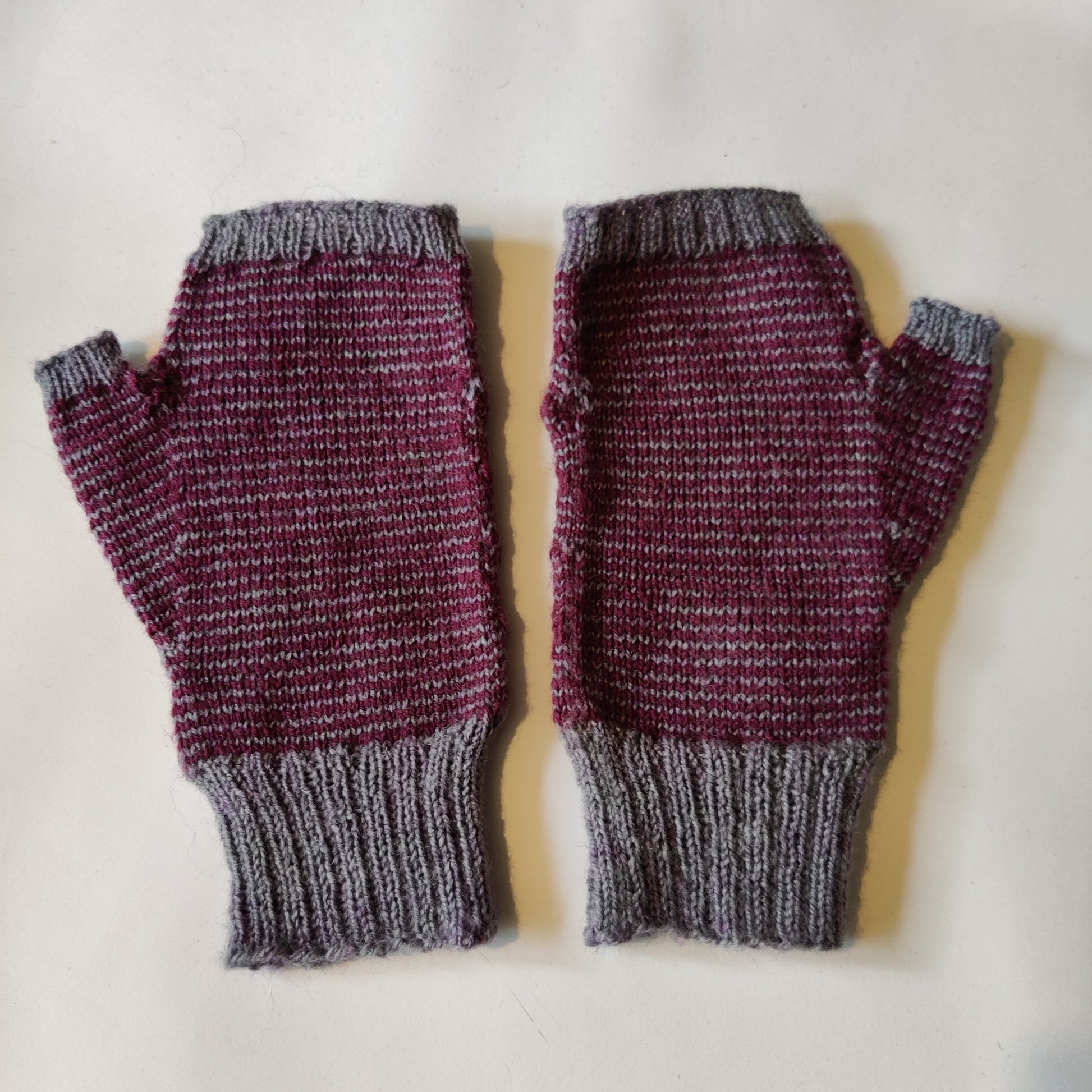 These beautiful and unique fingerless gloves are hand knitted in recycled/upcycled vintage yarns.
