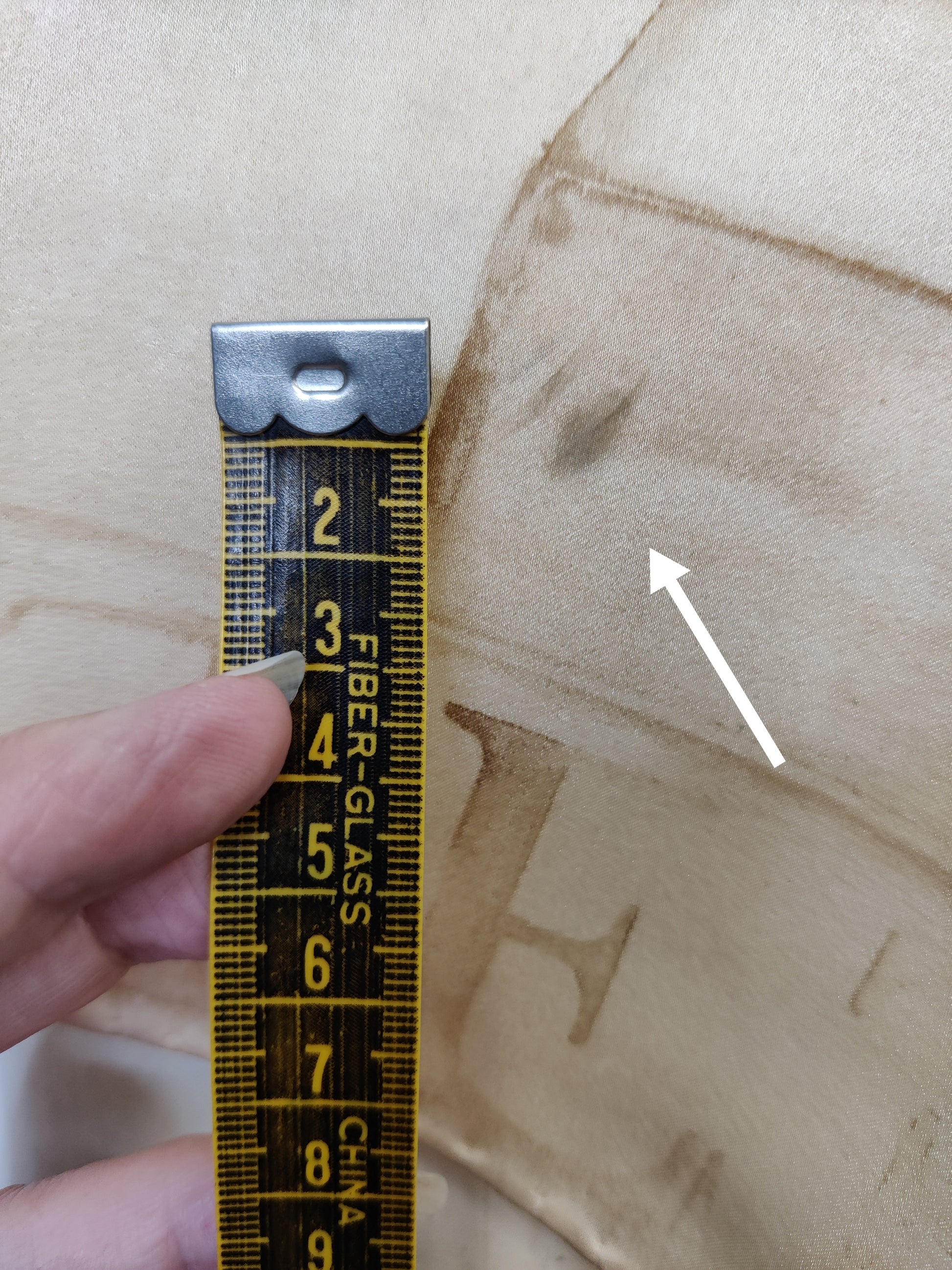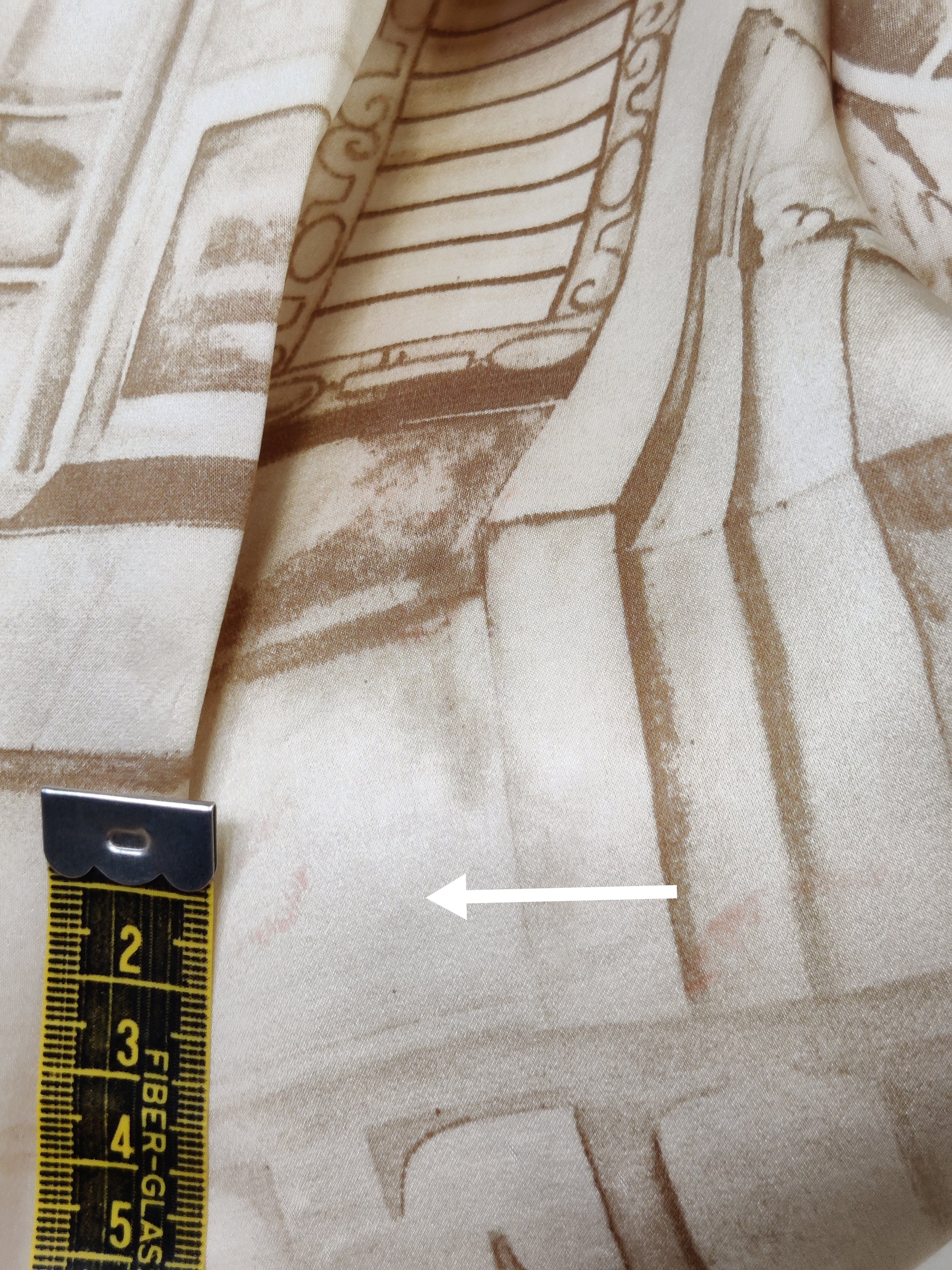 The silk has a lovely sheen and drapes beautifully. However it does have a couple of lipstick marks and a small dark mark ( see images). When the scarf is worn or folded they are not immediately visible.