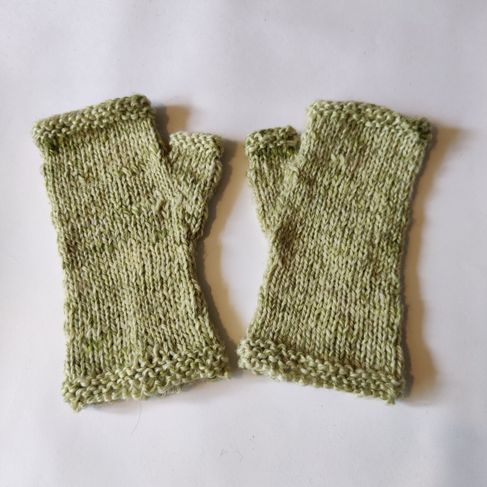 These beautiful and unique fingerless gloves are hand knitted in recycled/upcycled vintage yarns.