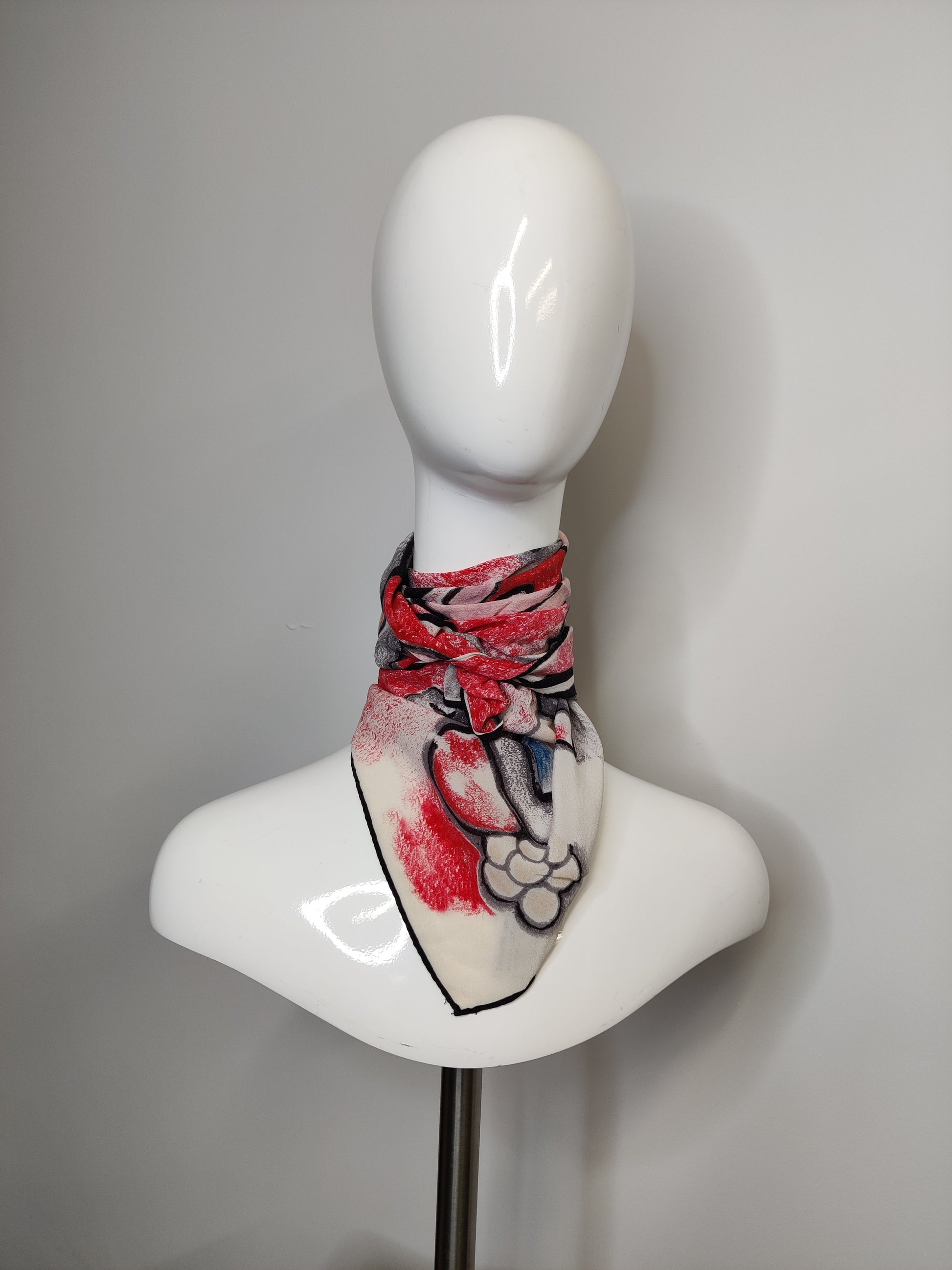 This is a quirky fine silk crepe scarf by Moschino (Cheap and Chic)