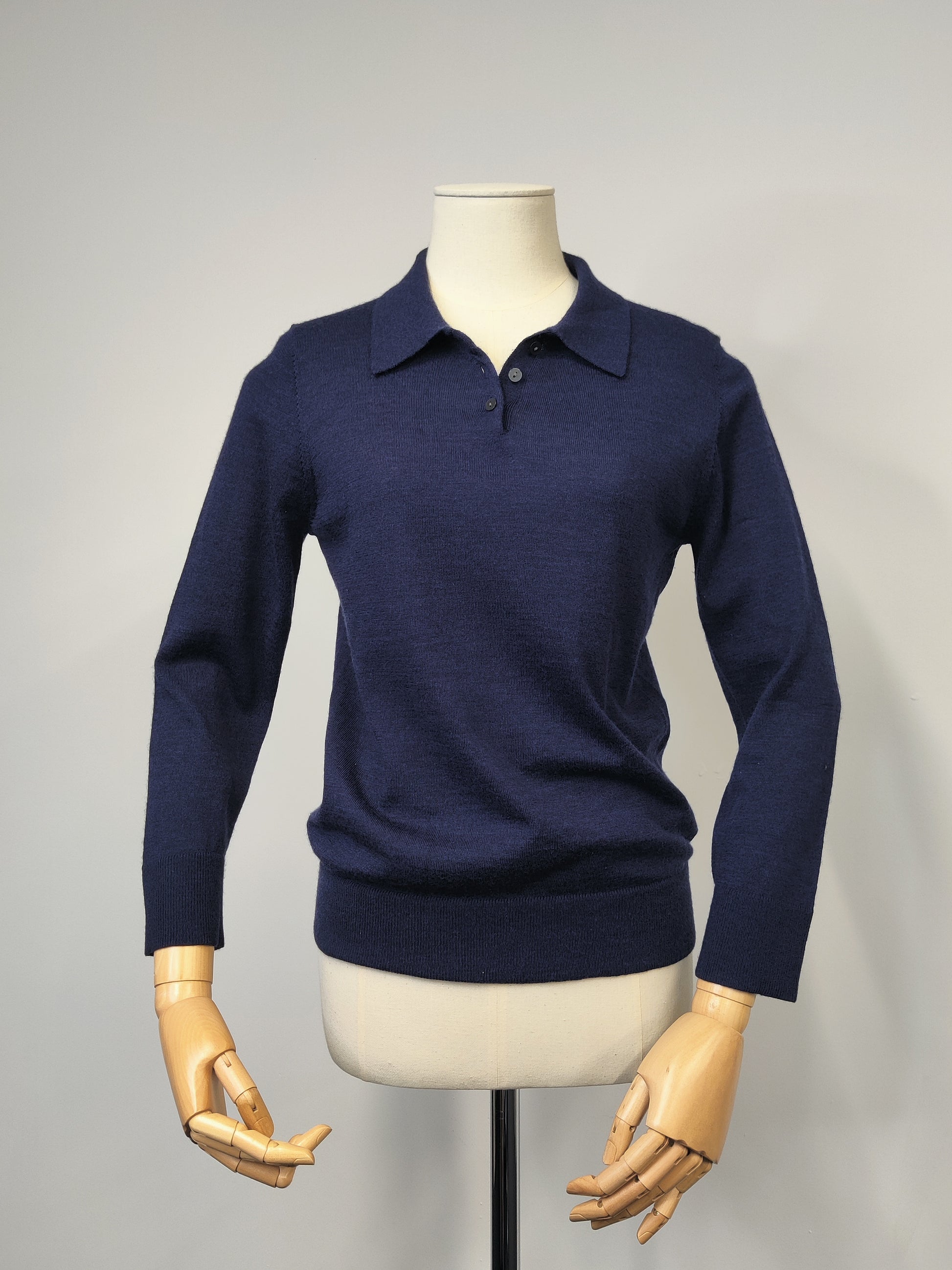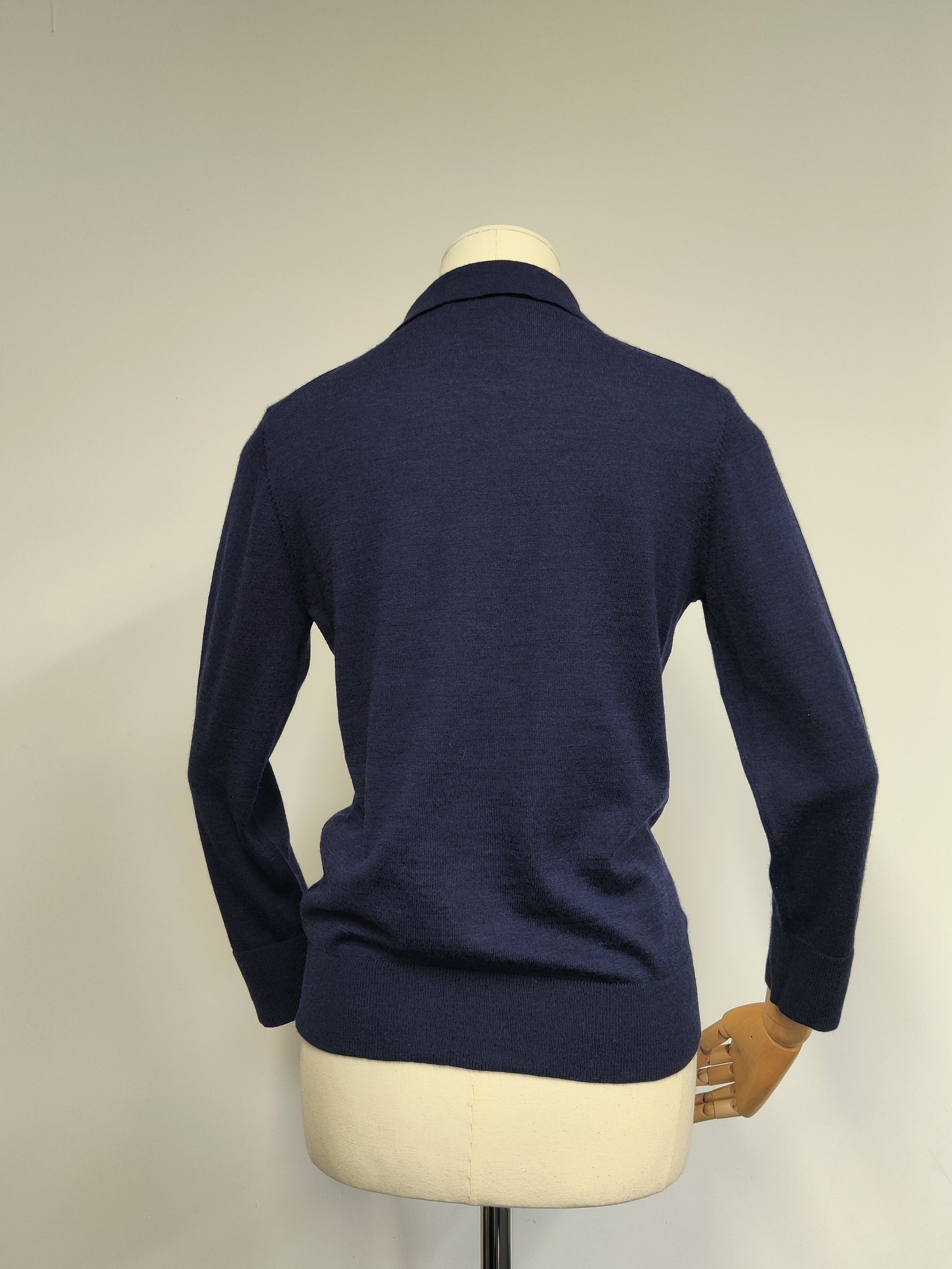 In a rich shade of navy blue it has a collared neckline with three buttons.