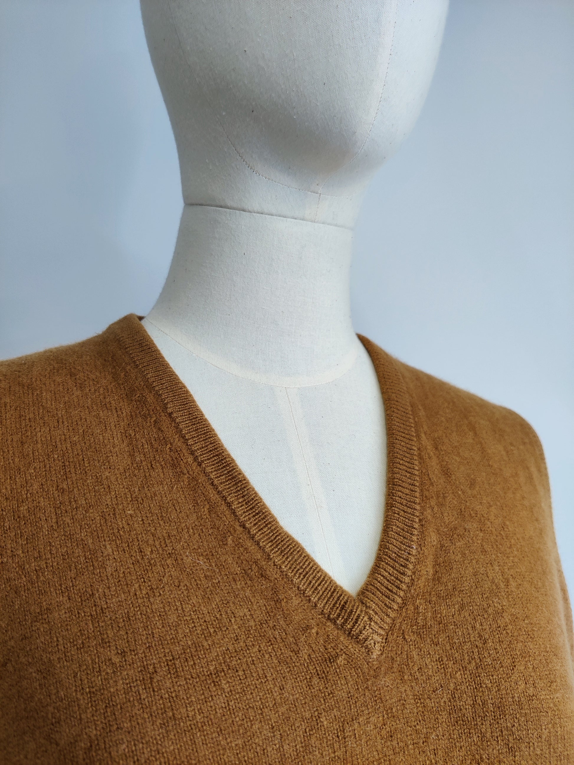 This is a 1960s/70s pure cashmere sleeveless slipover made by BRAEMAR in Scotland for Racson Ltd of Jermyn Street.
