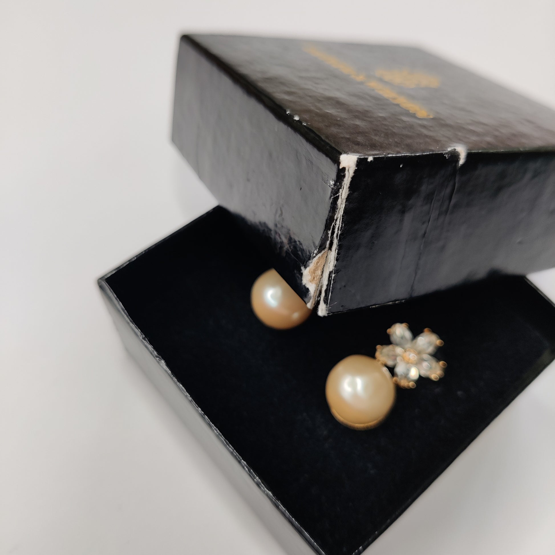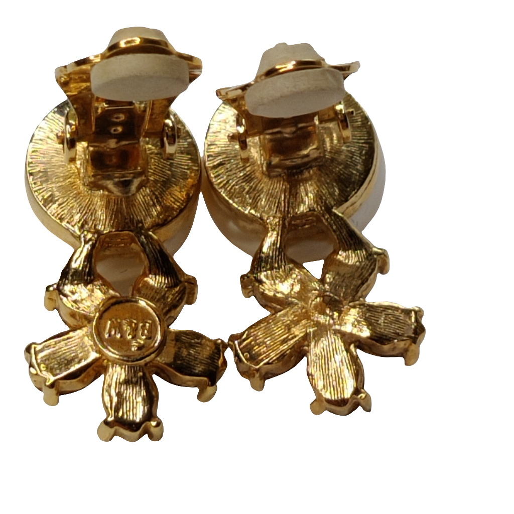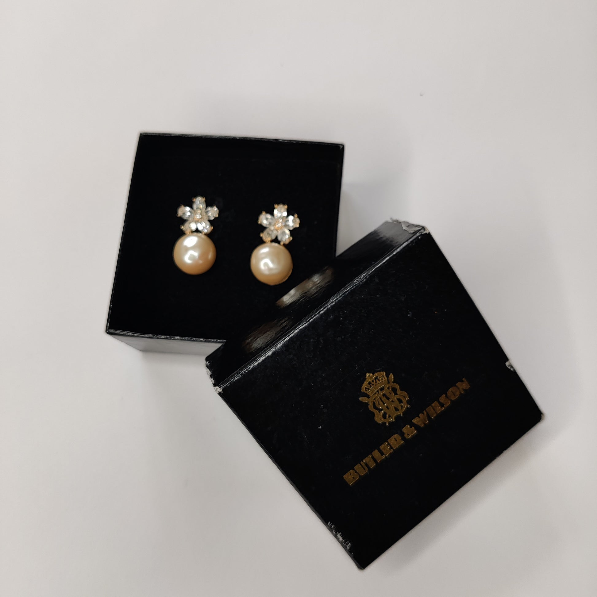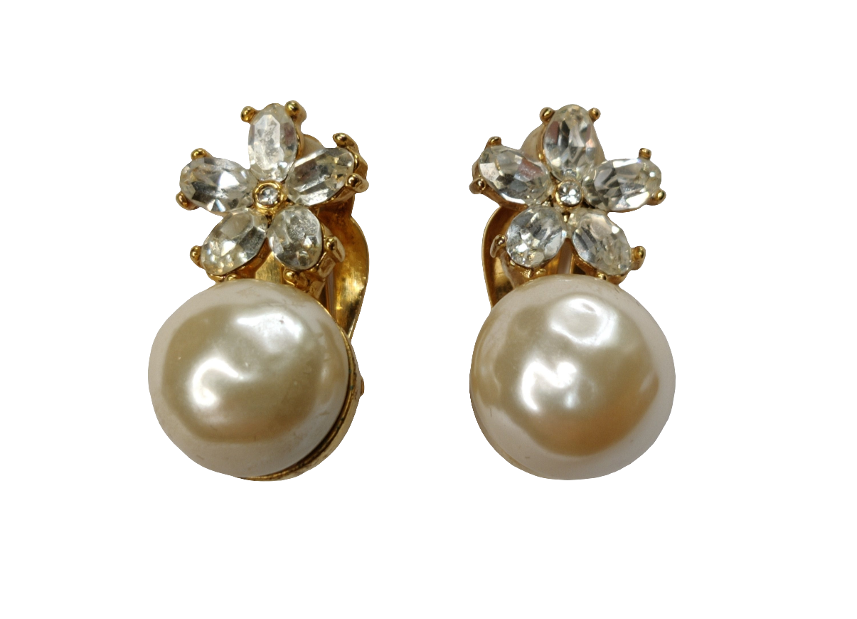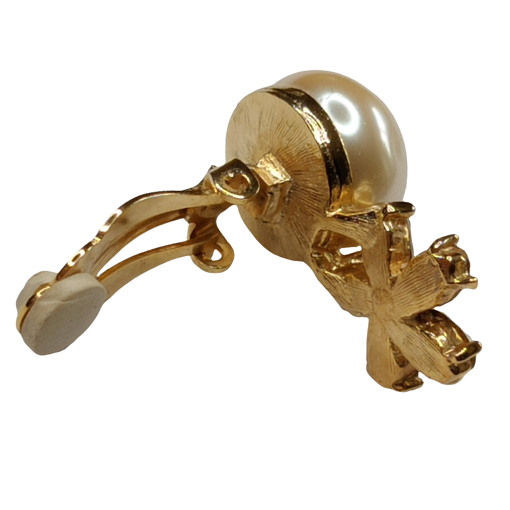A beautiful pair of crystal diamante and faux pearl earrings set in gold tone metal. These are vintage and we believe they are pre 2000 and most likely before the brand was taken forward solely by Simon Wilson in the 1990s.