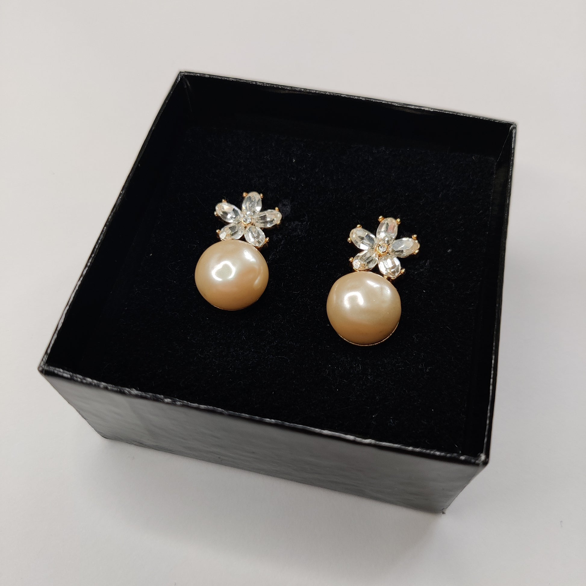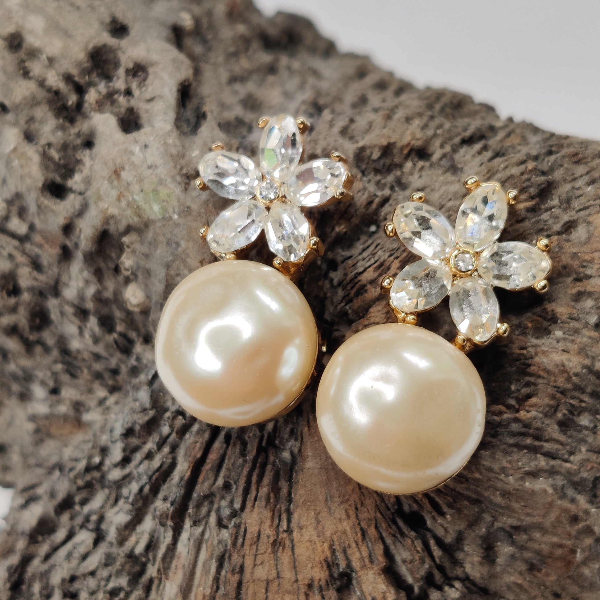 They are so timeless and elegant. Creamy toned faux baroque pearls are topped with a pretty five petal flower in diamante crystal. The faux pearls have a textured baroque finish, akin to dimpling.