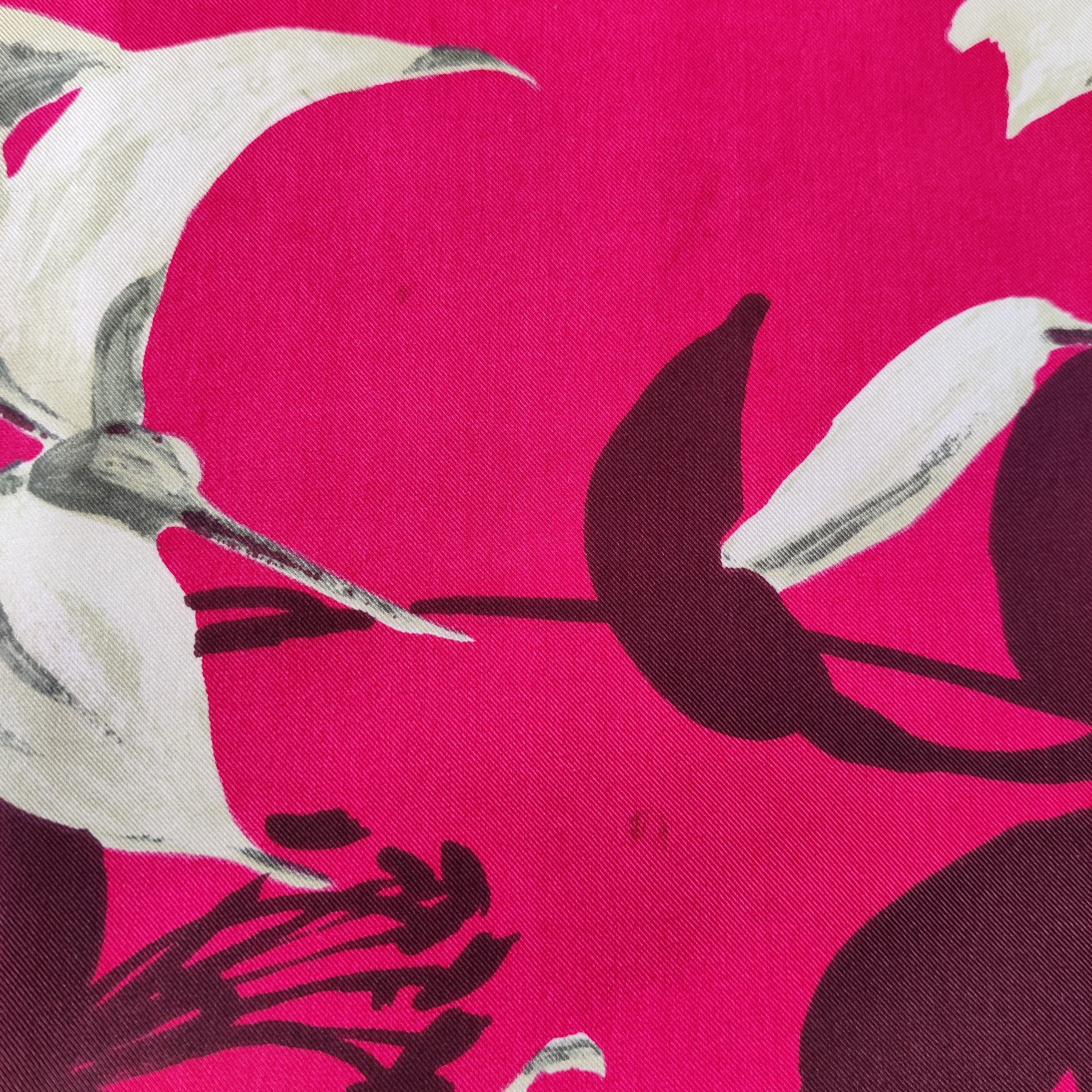 A beautiful deep coral red silk scarf dating to the 1960s.