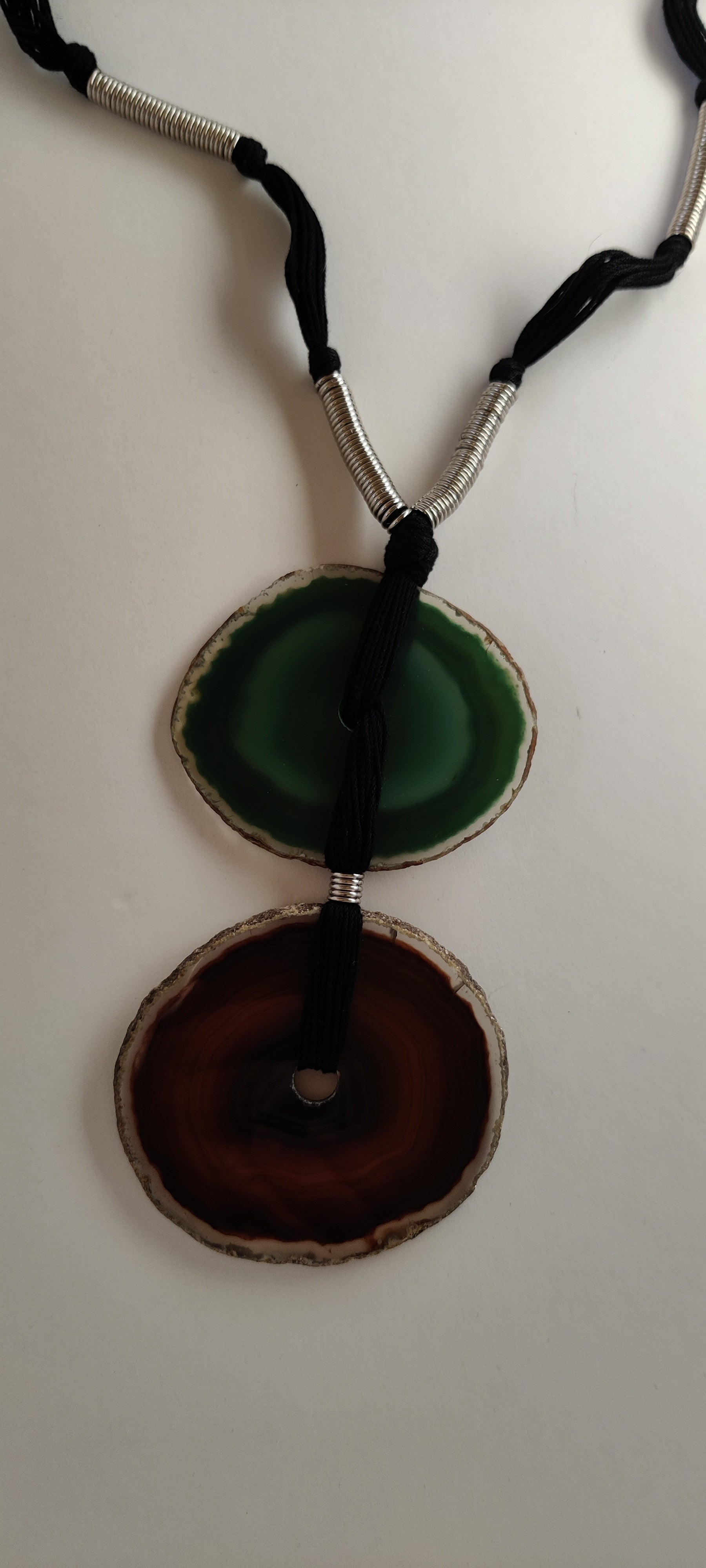 Pendant drop from cord (including knot)to bottom of second agate slice 6 ins